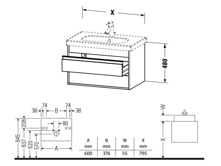 Тумба под раковину, Duravit, Ketho, ширина, мм-600, глубина, мм-455, высота, мм-480, тип установки-подвесной, форма мебели-прямоугольная, раковина-необходимо заказать, ящики-2, открывание-выдвижное, материал корпуса-ДСП меламиновая смола, материал фасада-ДСП меламиновая смола, цвет-белый матовый, верхний ящик с вырезом и крышкой для сифона Тумба под раковину, Duravit, Ketho, шгв 600*455*480, раковина-необходимо заказать, цвет-белый матовый