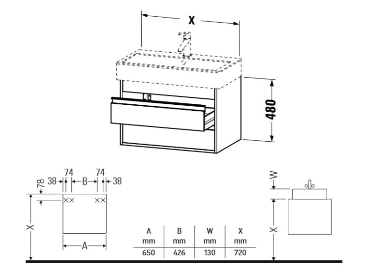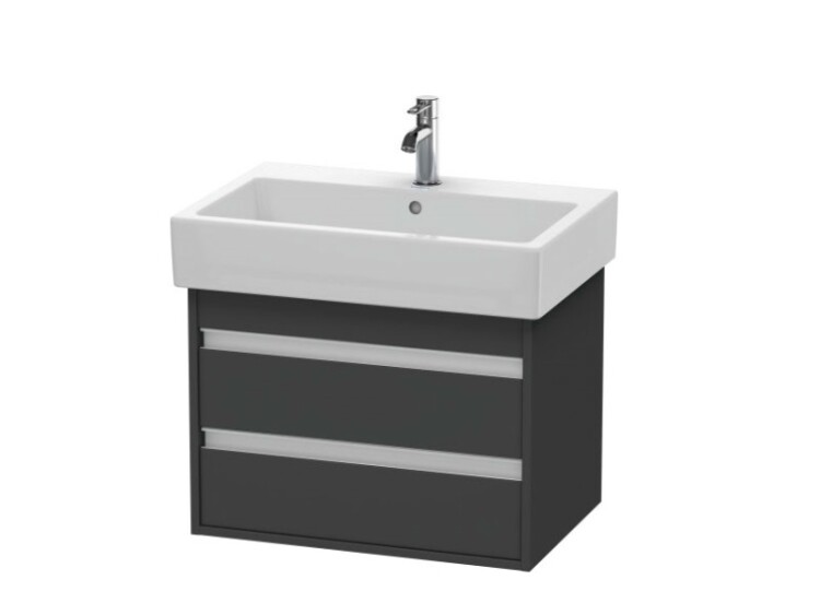 Тумба под раковину, Duravit, Ketho, ширина, мм-650, глубина, мм-440, высота, мм-480, тип установки-подвесной, форма мебели-прямоугольная, раковина-необходимо заказать, ящики-2, открывание-выдвижное, материал корпуса-ДСП меламиновая смола, материал фасада-ДСП меламиновая смола, цвет-графит матовый, верхний ящик с вырезом и крышкой для сифона Тумба под раковину, Duravit, Ketho, шгв 650*440*480, раковина-необходимо заказать, цвет-графит матовый