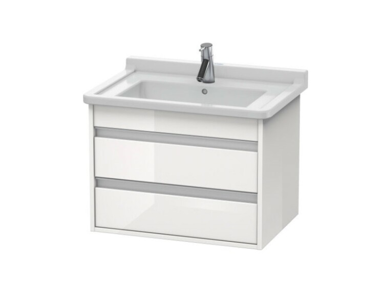 Тумба под раковину, Duravit, Ketho, ширина, мм-650, глубина, мм-465, высота, мм-480, тип установки-подвесной, форма мебели-прямоугольная, раковина-необходимо заказать, ящики-2, открывание-выдвижное, материал корпуса-ДСП ламинат, материал фасада-ДСП ламинат, цвет-белый глянцевый, верхний ящик с вырезом и крышкой для сифона Тумба под раковину, Duravit, Ketho, шгв 650*465*480, раковина-необходимо заказать, цвет-белый глянцевый