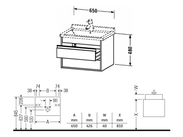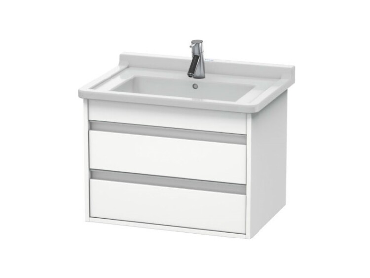 Тумба под раковину, Duravit, Ketho, ширина, мм-650, глубина, мм-465, высота, мм-480, тип установки-подвесной, форма мебели-прямоугольная, раковина-необходимо заказать, ящики-2, открывание-выдвижное, материал корпуса-ДСП меламиновая смола, материал фасада-ДСП меламиновая смола, цвет-белый матовый, верхний ящик с вырезом и крышкой для сифона Тумба под раковину, Duravit, Ketho, шгв 650*465*480, раковина-необходимо заказать, цвет-белый матовый