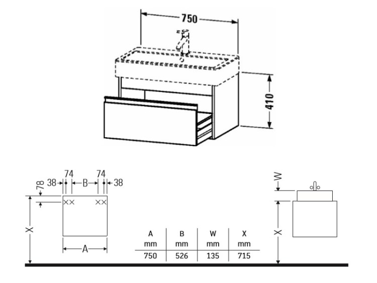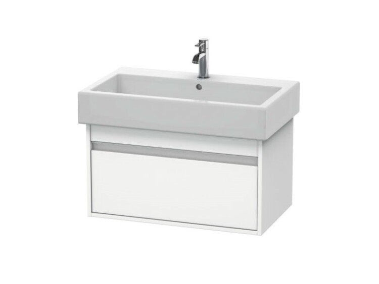 Тумба под раковину, Duravit, Ketho, ширина, мм-750, глубина, мм-440, высота, мм-410, тип установки-подвесной, форма мебели-прямоугольная, раковина-необходимо заказать, ящики-1, открывание-выдвижное, материал корпуса-ДСП меламиновая смола, материал фасада-ДСП меламиновая смола, цвет-белый матовый Тумба под раковину, Duravit, Ketho, шгв 750*440*410, раковина-необходимо заказать, цвет-белый матовый