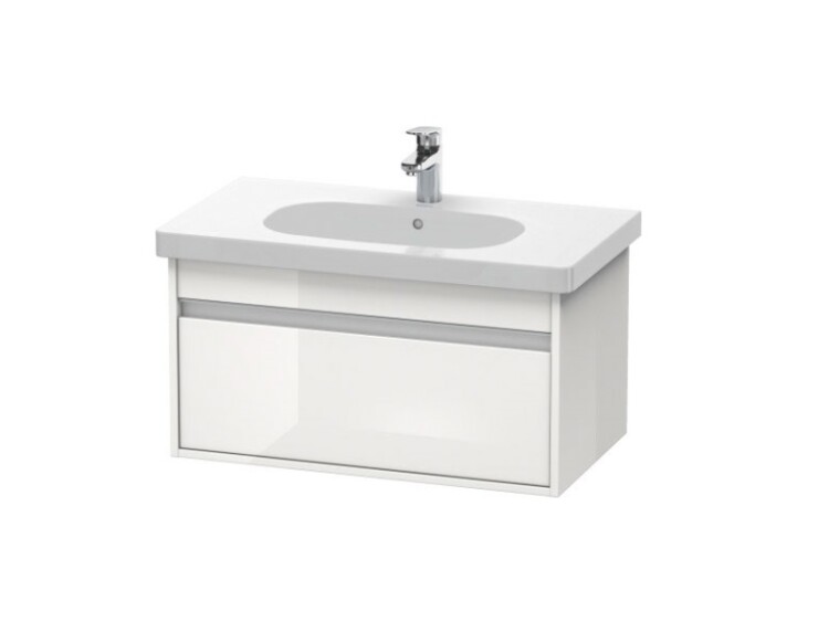 Тумба под раковину, Duravit, Ketho, ширина, мм-800, глубина, мм-455, высота, мм-410, тип установки-подвесной, форма мебели-прямоугольная, раковина-необходимо заказать, ящики-1, открывание-выдвижное, материал корпуса-ДСП ламинат, материал фасада-ДСП ламинат, цвет-белый глянцевый Тумба под раковину, Duravit, Ketho, шгв 800*455*410, раковина-необходимо заказать, цвет-белый глянцевый