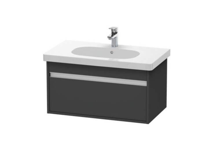 Тумба под раковину, Duravit, Ketho, ширина, мм-800, глубина, мм-455, высота, мм-410, тип установки-подвесной, форма мебели-прямоугольная, раковина-необходимо заказать, ящики-1, открывание-выдвижное, материал корпуса-ДСП меламиновая смола, материал фасада-ДСП меламиновая смола, цвет-графит матовый Тумба под раковину, Duravit, Ketho, шгв 800*455*410, раковина-необходимо заказать, цвет-графит матовый