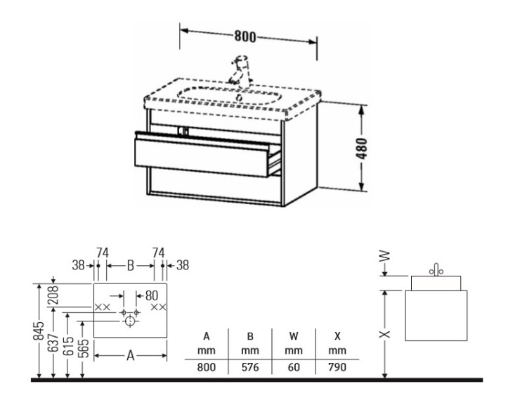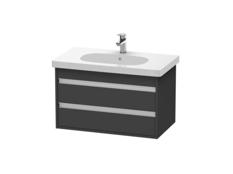 Тумба под раковину, Duravit, Ketho, ширина, мм-800, глубина, мм-455, высота, мм-480, тип установки-подвесной, форма мебели-прямоугольная, раковина-необходимо заказать, ящики-2, открывание-выдвижное, материал корпуса-ДСП меламиновая смола, материал фасада-ДСП меламиновая смола, цвет-графит матовый, верхний ящик с вырезом и крышкой для сифона Тумба под раковину, Duravit, Ketho, шгв 800*455*480, раковина-необходимо заказать, цвет-графит матовый