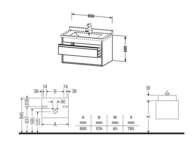 Тумба под раковину, Duravit, Ketho, ширина, мм-800, глубина, мм-465, высота, мм-480, тип установки-подвесной, форма мебели-прямоугольная, раковина-необходимо заказать, ящики-2, открывание-выдвижное, материал корпуса-ДСП меламиновая смола, материал фасада-ДСП меламиновая смола, цвет-белый матовый, верхний ящик с вырезом и крышкой для сифона Тумба под раковину, Duravit, Ketho, шгв 800*465*480, раковина-необходимо заказать, цвет-белый матовый