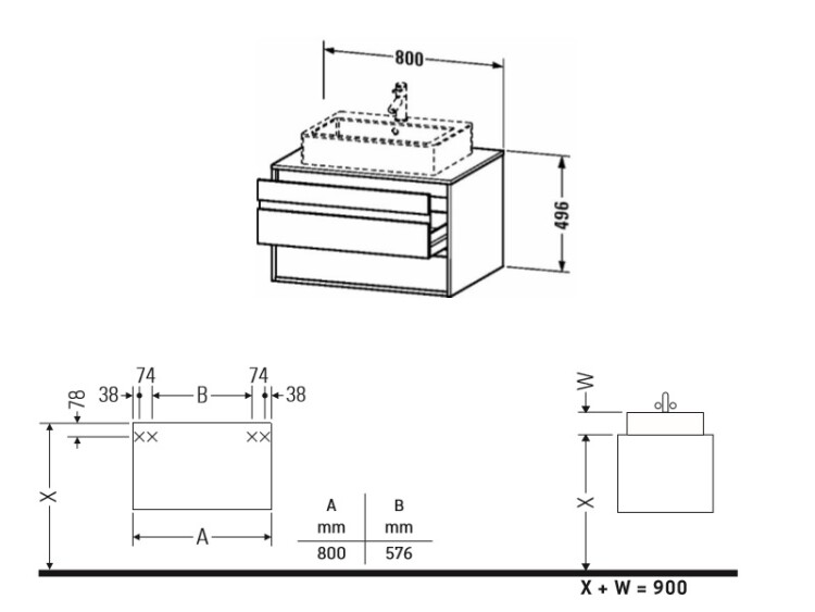 Тумба под раковину, Duravit, Ketho, ширина, мм-800, глубина, мм-550, высота, мм-496, тип установки-подвесной, форма мебели-прямоугольная, раковина-необходимо заказать, вырез под раковину-в центре, монтаж раковины-накладной, консоль/столешница-есть, ящики-2, открывание-выдвижное, материал корпуса-ДСП меламиновая смола, материал фасада-ДСП меламиновая смола, цвет-белый матовый, верхний ящик с вырезом и крышкой для сифона Тумба под раковину, Duravit, Ketho, шгв 800*550*496, раковина-необходимо заказать, цвет-белый матовый