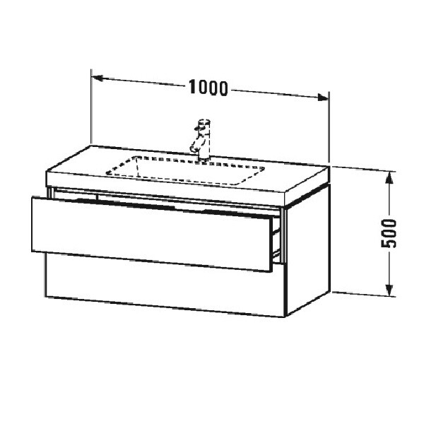 Тумба под раковину, Duravit, L-Cube, ширина, мм-1000, глубина, мм-480, высота, мм-500, тип установки-подвесной, форма мебели-прямоугольная, раковина-есть, количество раковин-1, вырез под раковину-один, форма раковины-прямоугольная, вырез под смеситель-один, ящики-2, открывание-выдвижное, материал корпуса-ДСП ламинат, материал фасада-ДСП ламинат, цвет-белый глянцевый, с вырезом и крышкой для сифона, с экономичным сифоном Тумба под раковину, Duravit, L-Cube, шгв 1000*480*500, раковина-в комплекте, цвет-белый глянцевый