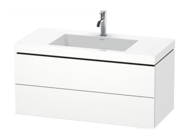 Тумба под раковину, Duravit, L-Cube, ширина, мм-1000, глубина, мм-480, высота, мм-500, тип установки-подвесной, форма мебели-прямоугольная, раковина-есть, количество раковин-1, без перелива, монтаж раковины-встраиваемый, форма раковины-прямоугольная, вырез под смеситель-один, ящики-2, открывание-выдвижное, верхний ящик с вырезом и крышкой для сифона, материал корпуса-ДСП меламиновая смола, материал фасада-ДСП меламиновая смола, выпуск с керамической крышкой, малогабаритный сифон, цвет-белый матовый Тумба под раковину, Duravit, L-Cube, шгв 1000*480*500, раковина-в комплекте, цвет-белый матовый