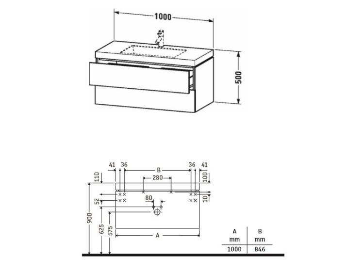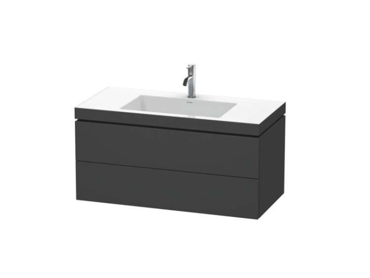 Тумба под раковину, Duravit, L-Cube, ширина, мм-1000, глубина, мм-480, высота, мм-500, тип установки-подвесной, форма мебели-прямоугольная, раковина-есть, количество раковин-1, форма раковины-прямоугольная, вырез под смеситель-один, ящики-2, открывание-выдвижное, материал корпуса-ДСП меламиновая смола, материал фасада-ДСП меламиновая смола, цвет-графит матовый, включая выпуск с керамической крышкой, малогабаритный сифон, вырез под сифон, крышка для сифона Тумба под раковину, Duravit, L-Cube, шгв 1000*480*500, раковина-в комплекте, цвет-графит матовый