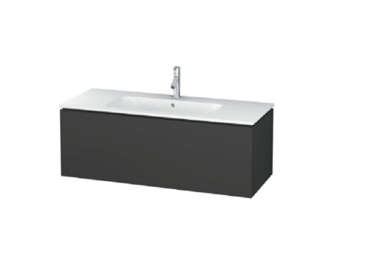 Тумба под раковину, Duravit, L-Cube, ширина, мм-1220, глубина, мм-481, высота, мм-400, тип установки-подвесной, форма мебели-прямоугольная, раковина-необходимо заказать, ящики-1, открывание-выдвижное, материал корпуса-ДСП меламиновая смола, материал фасада-ДСП меламиновая смола, цвет-графит матовый Тумба под раковину, Duravit, L-Cube, шгв 1220*481*400, раковина-необходимо заказать, цвет-графит матовый