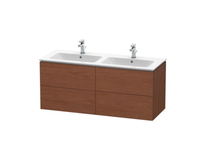 Тумба под раковину, Duravit, L-Cube, ширина, мм-1290, глубина, мм-481, высота, мм-550, тип установки-подвесной, форма мебели-прямоугольная, раковина-необходимо заказать, двойную, ящики-4, открывание-выдвижное, материал корпуса-ДСП шпон, материал фасада-ДСП шпон, цвет-американский орех, с вырезом и крышкой для сифона Тумба под раковину, Duravit, L-Cube, шгв 1290*481*550, раковина-необходимо заказать, цвет-американский орех