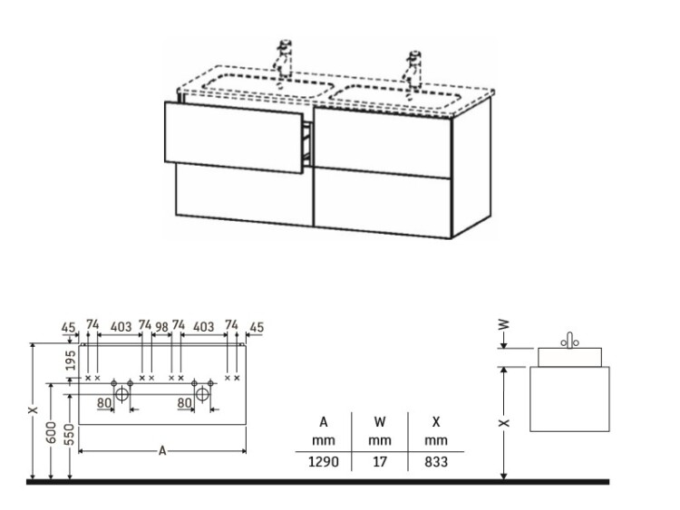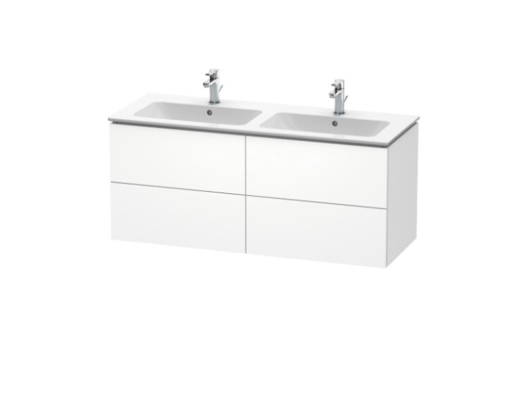 Тумба под раковину, Duravit, L-Cube, ширина, мм-1290, глубина, мм-481, высота, мм-550, тип установки-подвесной, форма мебели-прямоугольная, раковина-необходимо заказать, двойную, ящики-4, открывание-выдвижное, материал корпуса-ДСП меламиновая смола, материал фасада-ДСП меламиновая смола, цвет-белый матовый, с вырезом и крышкой для сифона Тумба под раковину, Duravit, L-Cube, шгв 1290*481*550, раковина-необходимо заказать, цвет-белый матовый
