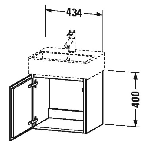 Тумба под раковину, Duravit, L-Cube, ширина, мм-434, глубина, мм-341, высота, мм-400, тип установки-подвесной, форма мебели-прямоугольная, раковина-необходимо заказать, количество раковин-1, дверцы-есть, материал корпуса-высокоплотная трехслойная ДСП, цвет корпуса-белый глянцевый, материал фасада-высокоплотная трехслойная ДСП, цвет-белый глянцевый, декор-без декора Тумба под раковину, Duravit, L-Cube, шгв 434*341*400, раковина-необходимо заказать, цвет-белый глянцевый