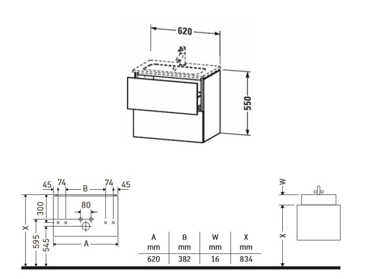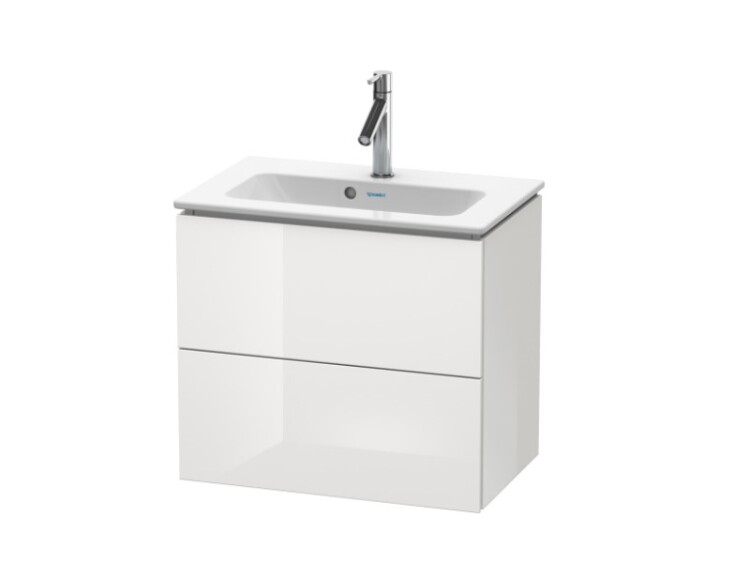 Тумба под раковину, Duravit, L-Cube, компакт, ширина, мм-620, глубина, мм-391, высота, мм-550, тип установки-подвесной, форма мебели-прямоугольная, раковина-необходимо заказать, ящики-2, открывание-выдвижное, материал корпуса-ДСП ламинат, материал фасада-ДСП ламинат, цвет-белый глянцевый, с вырезом и крышкой для сифона Тумба под раковину, Duravit, L-Cube, шгв 620*391*550, раковина-необходимо заказать, цвет-белый глянцевый