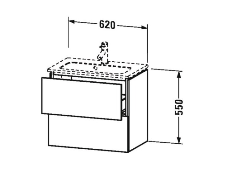 Тумба под раковину, Duravit, L-Cube, компакт, ширина, мм-620, глубина, мм-391, высота, мм-550, тип установки-подвесной, форма мебели-прямоугольная, раковина-необходимо заказать, ящики-2, открывание-выдвижное, материал корпуса-ДСП меламиновая смола, материал фасада-ДСП меламиновая смола, цвет-белый матовый, комплектация-вырез под сифон, крышка сифона Тумба под раковину, Duravit, L-Cube, шгв 620*391*550, раковина-необходимо заказать, цвет-белый матовый