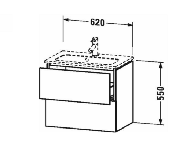 Тумба под раковину, Duravit, L-Cube, ширина, мм-620, глубина, мм-391, высота, мм-550, тип установки-подвесной, форма мебели-прямоугольная, раковина-необходимо заказать, ящики-2, открывание-выдвижное, материал корпуса-ДСП меламиновая смола, материал фасада-ДСП меламиновая смола, цвет-серо-коричневый матовый Тумба под раковину, Duravit, L-Cube, шгв 620*391*550, раковина-необходимо заказать, цвет-серо-коричневый матовый