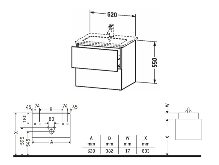 Тумба под раковину, Duravit, L-Cube, ширина, мм-620, глубина, мм-481, высота, мм-550, тип установки-подвесной, форма мебели-прямоугольная, раковина-необходимо заказать, ящики-2, открывание-выдвижное, материал корпуса-ДСП ламинат, материал фасада-ДСП ламинат, цвет-белый глянцевый, с вырезом и крышкой для сифона Тумба под раковину, Duravit, L-Cube, шгв 620*481*550, раковина-необходимо заказать, цвет-белый глянцевый