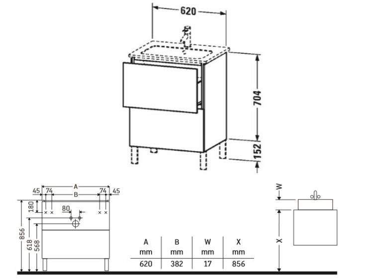Тумба под раковину, Duravit, L-Cube, ширина, мм-620, глубина, мм-481, высота, мм-856, тип установки-напольный, форма мебели-прямоугольная, раковина-необходимо заказать, ящики-2, открывание-выдвижное, верхний ящик с вырезом и крышкой для сифона, материал корпуса-ДВП лак, материал фасада-ДВП лак, цвет-белый глянцевый лак, ножки-необходимо заказать Тумба под раковину, Duravit, L-Cube, шгв 620*481*856, раковина-необходимо заказать, цвет-белый глянцевый лак