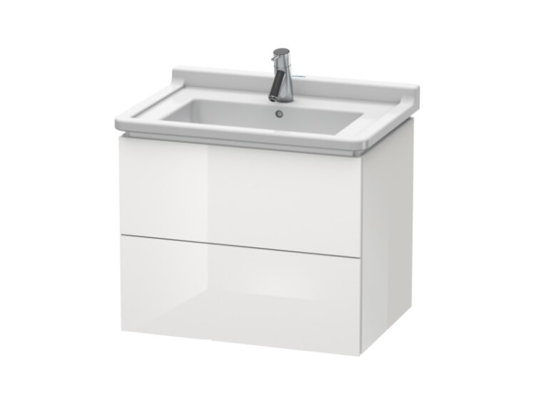Тумба под раковину, Duravit, L-Cube, ширина, мм-670, глубина, мм-469, высота, мм-558, тип установки-подвесной, форма мебели-прямоугольная, раковина-необходимо заказать, ящики-2, открывание-выдвижное, верхний ящик с вырезом и крышкой для сифона, материал корпуса-ДСП ламинат, материал фасада-ДСП ламинат, цвет-белый глянцевый Тумба под раковину, Duravit, L-Cube, шгв 670*469*558, раковина-необходимо заказать, цвет-белый глянцевый