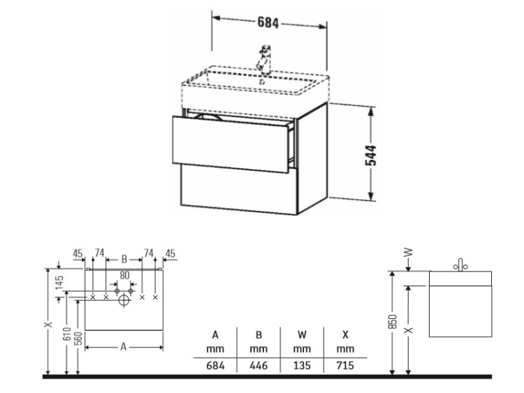Тумба под раковину, Duravit, L-Cube, ширина, мм-684, глубина, мм-459, высота, мм-544, тип установки-подвесной, форма мебели-прямоугольная, раковина-необходимо заказать, ящики-2, открывание-выдвижное, материал корпуса-ДВП лак, материал фасада-ДВП лак, цвет-белый глянцевый Тумба под раковину, Duravit, L-Cube, шгв 684*459*544, раковина-необходимо заказать, цвет-белый глянцевый