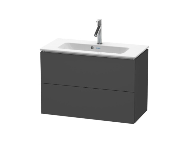 Тумба под раковину, Duravit, L-Cube, ширина, мм-820, глубина, мм-391, высота, мм-550, тип установки-подвесной, форма мебели-прямоугольная, раковина-необходимо заказать, ящики-2, открывание-выдвижное, верхний ящик с вырезом и крышкой для сифона, материал корпуса-ДСП меламиновая смола, материал фасада-ДСП меламиновая смола, цвет-графит матовый Тумба под раковину, Duravit, L-Cube, шгв 820*391*550, раковина-необходимо заказать, цвет-графит матовый