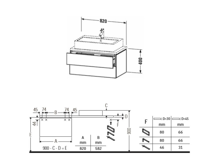 Тумба под раковину, Duravit, L-Cube, ширина, мм-820, глубина, мм-477, высота, мм-400, тип установки-подвесной, форма мебели-прямоугольная, раковина-необходимо заказать, ящики-2, открывание-выдвижное, материал корпуса-ДСП шпон, материал фасада-ДСП шпон, цвет-американский орех, включая вырез под сифон и крышку сифона Тумба под раковину, Duravit, L-Cube, шгв 820*477*400, раковина-необходимо заказать, цвет-американский орех