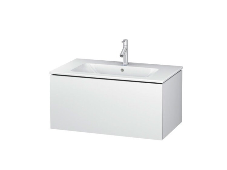 Тумба под раковину, Duravit, L-Cube, ширина, мм-820, глубина, мм-481, высота, мм-400, тип установки-подвесной, форма мебели-прямоугольная, раковина-необходимо заказать, ящики-1, открывание-выдвижное, материал корпуса-ДСП меламиновая смола, материал фасада-ДСП меламиновая смола, цвет-белый матовый Тумба под раковину, Duravit, L-Cube, шгв 820*481*400, раковина-необходимо заказать, цвет-белый матовый