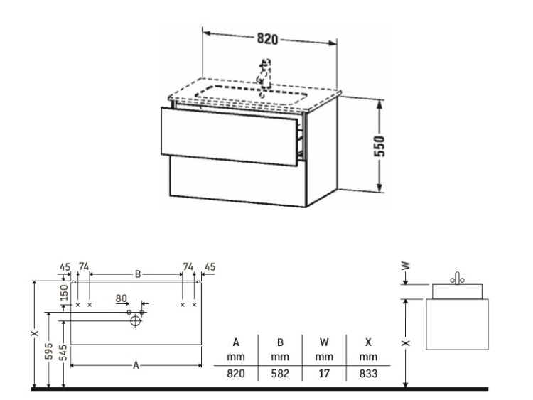 Тумба под раковину, Duravit, L-Cube, ширина, мм-820, глубина, мм-481, высота, мм-550, тип установки-подвесной, форма мебели-прямоугольная, раковина-необходимо заказать, ящики-2, открывание-выдвижное, материал корпуса-ДВП лак, материал фасада-ДВП лак, цвет-белый глянцевый лак, включен вырез и крышка для сифона Тумба под раковину, Duravit, L-Cube, шгв 820*481*550, раковина-необходимо заказать, цвет-белый глянцевый лак