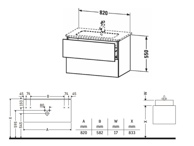 Тумба под раковину, Duravit, L-Cube, ширина, мм-820, глубина, мм-481, высота, мм-550, тип установки-подвесной, форма мебели-прямоугольная, раковина-необходимо заказать, ящики-2, открывание-выдвижное, материал корпуса-ДСП шпон, материал фасада-ДВП шпон, цвет-дуб средиземноморский, верхний ящик с вырезом и крышкой для сифона Тумба под раковину, Duravit, L-Cube, шгв 820*481*550, раковина-необходимо заказать, цвет-дуб средиземноморский