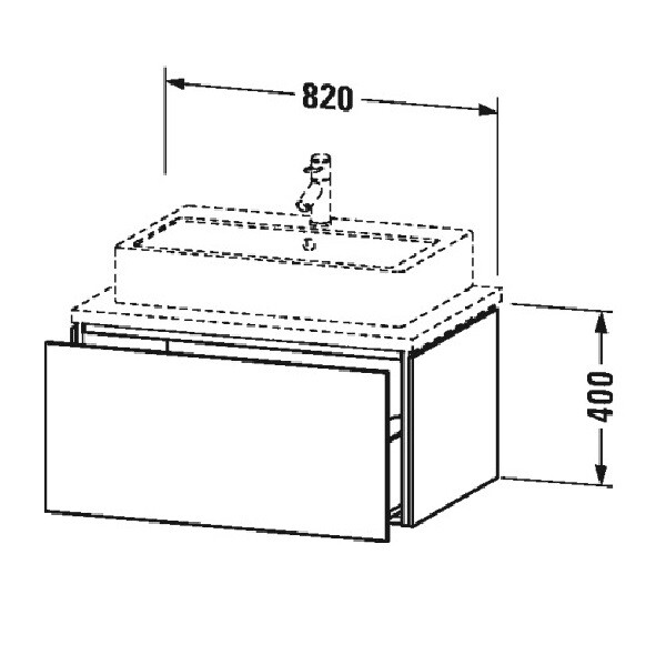 Тумба под раковину, Duravit, L-Cube, ширина, мм-820, глубина, мм-547, высота, мм-400, тип установки-подвесной, форма мебели-прямоугольная, раковина-необходимо заказать, консоль/столешница-необходимо заказать, ящики-1, открывание-выдвижное, комплектация-вырез под сифон, крышка сифона, материал фасада-высокоплотная трехслойная ДСП, цвет-графит матовый, декор-без декора Тумба под раковину, Duravit, L-Cube, шгв 820*547*400, раковина-необходимо заказать, цвет-графит матовый