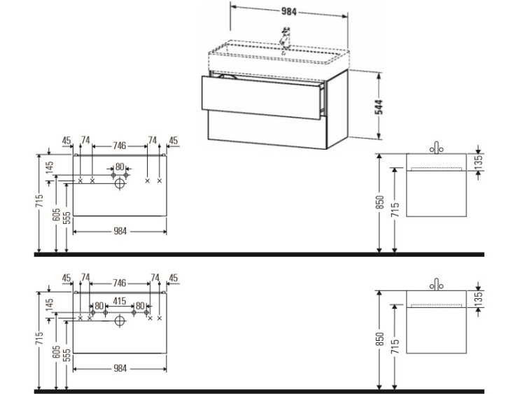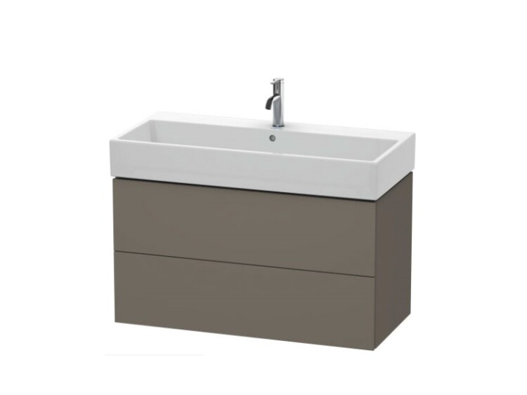 Тумба под раковину, Duravit, L-Cube, ширина, мм-984, глубина, мм-459, высота, мм-544, тип установки-подвесной, форма мебели-прямоугольная, раковина-необходимо заказать, ящики-2, открывание-выдвижное, материал корпуса-ДВП лак, материал фасада-ДВП лак, цвет-фланелево-серый шелковисто-матовый Тумба под раковину, Duravit, L-Cube, шгв 984*459*544, раковина-необходимо заказать, цвет-фланелево-серый шелковисто-матовый