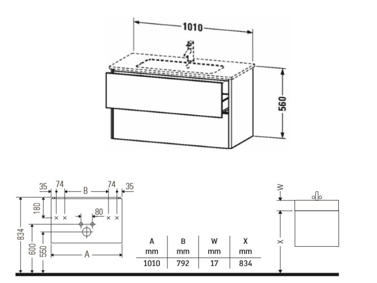 Тумба под раковину, Duravit, XSquare, ширина, мм-1010, глубина, мм-478, высота, мм-560, тип установки-подвесной, форма мебели-прямоугольная, раковина-необходимо заказать, ящики-2, открывание-выдвижное, материал корпуса-ДСП меламиновая смола, материал фасада-ДСП меламиновая смола, цвет-графит матовый, верхний ящик с вырезом и крышкой для сифона Тумба под раковину, Duravit, XSquare, шгв 1010*478*560, раковина-необходимо заказать, цвет-графит матовый