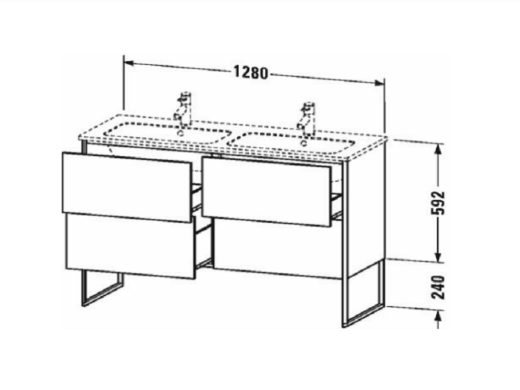 Тумба под раковину, Duravit, XSquare, ширина, мм-1280, глубина, мм-478, высота, мм-592, тип установки-подвесной, форма мебели-прямоугольная, раковина-необходимо заказать, ящики-4, открывание-выдвижное, материал корпуса-ДСП ламинат, материал фасада-ДСП ламинат, цвет-бетонно-серый матовый, вырез под сифон, крышка для сифона, ножки-интегрированная рама с настройкой высоты Тумба под раковину, Duravit, XSquare, шгв 1280*478*592, раковина-необходимо заказать, цвет-бетонно-серый матовый