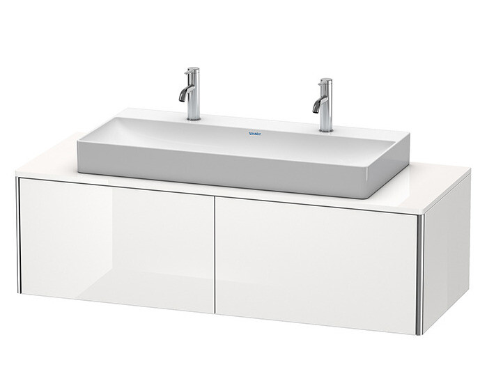 Тумба под раковину, Duravit, XSquare, ширина, мм-1400, глубина, мм-548, высота, мм-400, тип установки-подвесной, раковина-необходимо заказать, столешница-необходимо заказать, ящики-2, материал-высокоплотная трехслойная ДСП, покрытая декором из меламиновой смолы с обеих сторон, внутренняя поверхность в цвете -черный бриллиант, материал кромки-АБС-пластик, цвет-белый Тумба под раковину, Duravit, XSquare, шгв 1400*548*400, раковина-необходимо заказать, цвет-белый