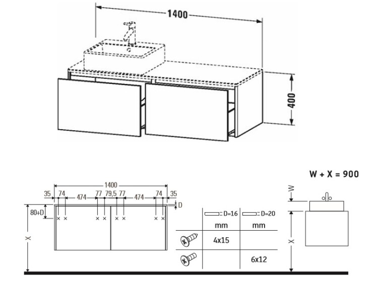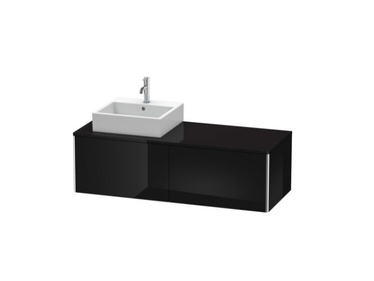 Тумба под раковину, Duravit, XSquare, ширина, мм-1400, глубина, мм-548, высота, мм-400, тип установки-подвесной, форма мебели-прямоугольная, раковина-необходимо заказать, ящики-2, открывание-выдвижное, материал корпуса-ДВП лак, материал фасада-ДВП лак, цвет-черный глянцевый, установка раковины-слева Тумба под раковину, Duravit, XSquare, шгв 1400*548*400, раковина-необходимо заказать, цвет-черный глянцевый