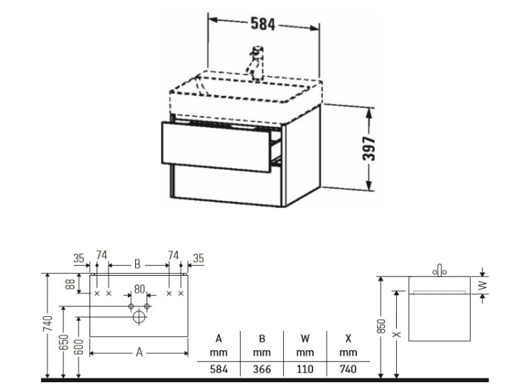 Тумба под раковину, Duravit, XSquare, ширина, мм-584, глубина, мм-460, высота, мм-397, тип установки-подвесной, форма мебели-прямоугольная, раковина-необходимо заказать, ящики-2, открывание-выдвижное, верхний ящик с вырезом и крышкой для сифона, материал корпуса-ДВП лак, материал фасада-ДВП лак, цвет-скандинавский белый шелковисто-матовый Тумба под раковину, Duravit, XSquare, шгв 584*460*397, раковина-необходимо заказать, цвет-скандинавский белый шелковисто-матовый