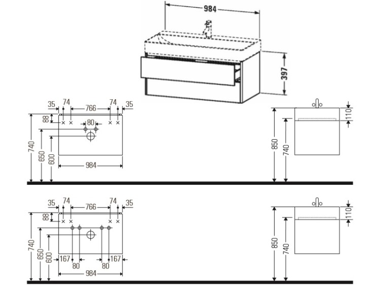 Тумба под раковину, Duravit, XSquare, ширина, мм-984, глубина, мм-460, высота, мм-397, тип установки-подвесной, форма мебели-прямоугольная, раковина-необходимо заказать, ящики-2, открывание-выдвижное, верхний ящик с вырезом и крышкой для сифона, материал корпуса-ДВП лак, материал фасада-ДВП лак, цвет-фланелево-серый шелковисто-матовый Тумба под раковину, Duravit, XSquare, шгв 984*460*397, раковина-необходимо заказать, цвет-фланелево-серый шелковисто-матовый