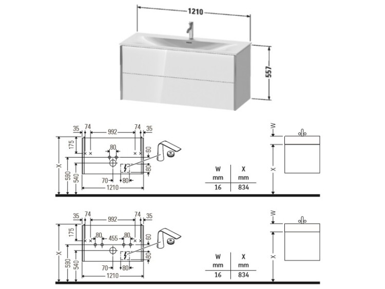 Тумба под раковину, Duravit, XViu, ширина, мм-1210, глубина, мм-480, высота, мм-557, тип установки-подвесной, форма мебели-прямоугольная, раковина-необходимо заказать, ящики-2, открывание-выдвижное, верхний ящик с вырезом и крышкой для сифона, цвет-лён, поверхность бокового алюминиевого профиля-Champagne Matt Тумба под раковину, Duravit, XViu, шгв 1210*480*557, раковина-необходимо заказать, цвет-лён
