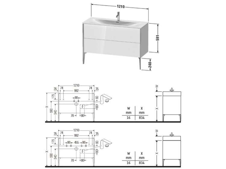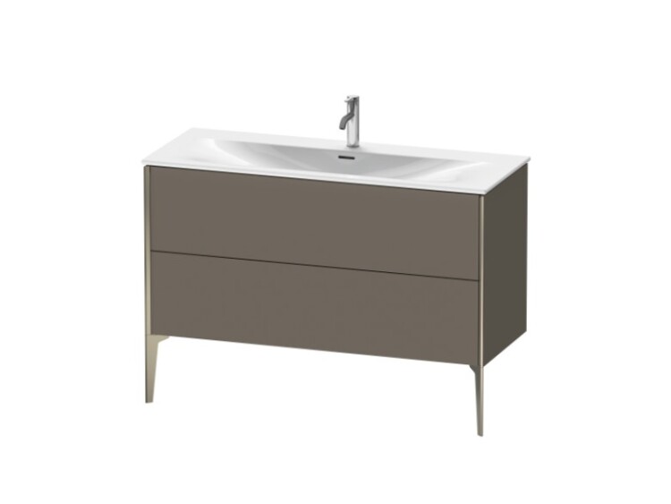 Тумба под раковину, Duravit, XViu, ширина, мм-1210, глубина, мм-480, высота, мм-591, тип установки-напольный, форма мебели-прямоугольная, раковина-необходимо заказать, ящики-2, открывание-выдвижное, цвет-flannel grey satin matt, поверхность бокового алюминиевого профиля-Champagne, ножки-необходимо заказать, верхний ящик с вырезом и крышкой для сифона Тумба под раковину, Duravit, XViu, шгв 1210*480*591, раковина-необходимо заказать, цвет-flannel grey satin matt