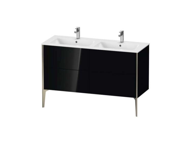 Тумба под раковину, Duravit, XViu, ширина, мм-1280, глубина, мм-480, высота, мм-834, тип установки-напольный, форма мебели-прямоугольная, раковина-необходимо заказать, ящики-4, открывание-выдвижное, верхний ящик с вырезом и крышкой для сифона, цвет-Black High Gloss, поверхность бокового алюминиевого профиля-Champagne Matt, ножки-необходимо заказать Тумба под раковину, Duravit, XViu, шгв 1280*480*834, раковина-необходимо заказать, цвет-Black High Gloss