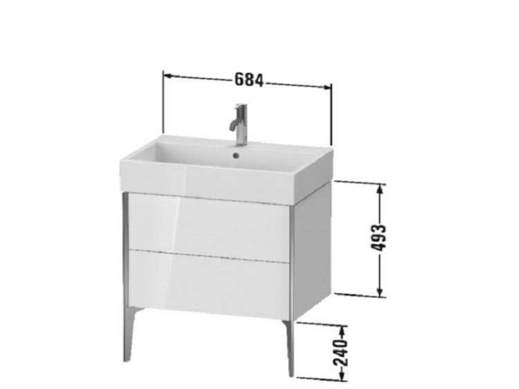 Тумба под раковину, Duravit, XViu, ширина, мм-684, глубина, мм-493, высота, мм-454, тип установки-напольный, форма мебели-прямоугольная, раковина-необходимо заказать, ящики-2, открывание-выдвижное, цвет-черный, высокий блеск, ножки-необходимо заказать Тумба под раковину, Duravit, XViu, шгв 684*493*454, раковина-необходимо заказать, цвет-черный, высокий блеск