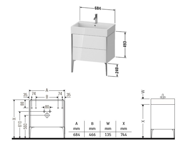 Тумба под раковину, Duravit, XViu, ширина, мм-684, глубина, мм-493, высота, мм-454, тип установки-напольный, форма мебели-прямоугольная, раковина-необходимо заказать, ящики-2, открывание-выдвижное, цвет-Dolomiti Grey HG, поверхность бокового алюминиевого профиля-Black Matt, ножки-необходимо заказать Тумба под раковину, Duravit, XViu, шгв 684*493*454, раковина-необходимо заказать, цвет-Dolomiti Grey HG