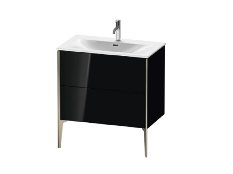 Тумба под раковину, Duravit, XViu, ширина, мм-810, глубина, мм-480, высота, мм-591, тип установки-напольный, форма мебели-прямоугольная, раковина-необходимо заказать, ящики-2, открывание-выдвижное, цвет-черный глянцевый, поверхность бокового алюминиевого профиля-Champagne, верхний ящик с вырезом и крышкой для сифона Тумба под раковину, Duravit, XViu, шгв 810*480*591, раковина-необходимо заказать, цвет-черный глянцевый