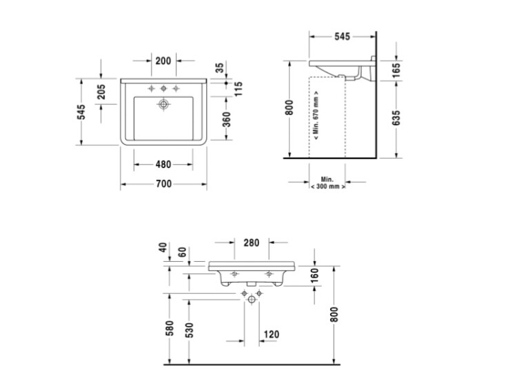 Раковина, Duravit, Starck 3, Vital, ширина, мм-700, глубина, мм-545, высота, мм-200, отверстия для смесителя-1, перелив-есть, материал-керамика, цвет-белый, с плоскостью под смеситель, глазуровка-снизу Раковина, Duravit, Starck 3, шгв 700*545*200, отверстия для смесителя-1, цвет-белый