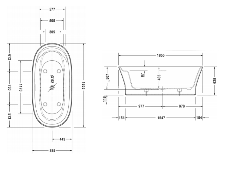 Ванна, Duravit, Cape Cod, ширина, мм-1855, глубина, мм-885, высота, мм-485, водоизмещение (л)-205, тип установки-отдельностоящий, форма-овальная, панель-есть, слив-перелив-в комплекте, диаметр слива, мм-52, ножки-есть, с двумя наклонами для спины, материал-DuraSolid A, цвет-белый Ванна, Duravit, Cape Cod, шгв 1855*885*485, цвет-белый
