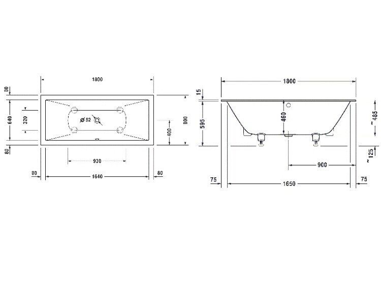 Ванна, Duravit, DuraSquare, ширина, мм-1800, глубина, мм-800, высота, мм-460, водоизмещение (л)-170, тип установки-встраиваемый, форма-прямоугольная, слив-перелив-необходимо заказать, диаметр слива, мм-52, ножки-есть, материал-DuraSolid A, цвет-белый Ванна, Duravit, DuraSquare, шгв 1800*800*460, цвет-белый