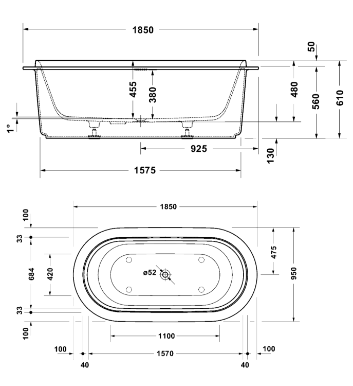 Ванна, Duravit, Vitrium, ширина, мм-1850, глубина, мм-950, высота, мм-610, водоизмещение (л)-455, тип установки-отдельностоящий, форма-овальная, панель-есть, слив-перелив-в комплекте, диаметр слива, мм-52, материал-DuroCast UltraResist, количество спинок-2, в комплекте-опорная рама, цвет-White Satin Matt Ванна, Duravit, Vitrium, шгв 1850*950*610, цвет-White Satin Matt