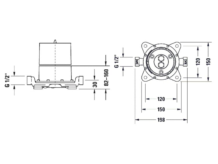 Внутрення часть, Duravit, назначение-для напольного смесителя, стандарт подвода воды-1/2" Внутрення часть, Duravit, назначение-для напольного смесителя