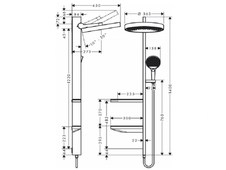 | Размер верхнего душа, мм | 360 |