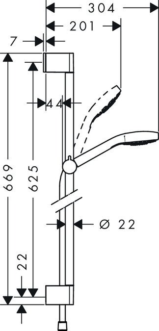 Душевой гарнитур, Hansgrohe, Croma Select S, размер штанги, мм-650, размер шланга, мм-1600, диаметр ручного душа, мм-110, количество режимов-1, тип струи-Rain, цвет-белый/хром Душевой гарнитур, Hansgrohe, Croma Select S, цвет-белый/хром